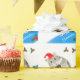 This lovely personalised boys Christmas gift wrap features a cute fluffy Grey and white Hamster holding a present and wearing a Santa hat against a white background with Holly. The name can be changed. Perfect to team with a matching gift tag for a truly personal Xmas present”