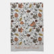 This light grey Thanksgiving Fall Harvest and Horns kitchen towel features a hand-drawn Fall Harvest pattern in black ink against an elegant light grey background, capturing the spirit of autumn.