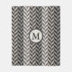 Grey Herringbone Alternating Stripes Monogram Fleece Blanket