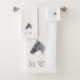 Bath towel set, consisting of a face cloth, hand towel and bath towel with a horse design. You can customise this bath towel set with any text of your choice. Should you require any help with customising then contact us through the message link on this page. Horse design bathroom towel set