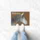 A pastel portrait of a lovely grey horse adorns this doormat! Customize by changing the background colour to suit yourself!