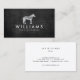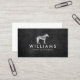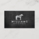 A simple, yet classic design of a vintage-style illustration of a grey horse along with your name or farm name stands out on this rustic business card template with black wood background. Please contact the designer if you need further customization. © 1201AM CREATIVE