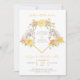 Grey horse heads with roses in shades of warm yellows, coral and muted greens wedding photo invitation, back is yellow with a repeat horseshoe watercolor art design. Personalize your own wedding details. Ideal for horse themed or racecourse wedding. © Original hand watercolor paintings and design by Sarah Trett exclusively for www.mylittleedenweddings.com on Zazzle.