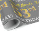 This wrapping paper design features a message like "First-Name’s 53rd BIRTHDAY!", with the "53rd" having a faux/imitation gold-like colour appearance. The name can be customized, and the background is coloured grey (grey). It could perhaps be used when wrapping gifts being given for somebody’s fifty third birthday. [~Z0000185]