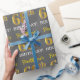This wrapping paper design features a message like "FirstName’s 68th BIRTHDAY!", with the "68th" having a faux/imitation gold-like colour appearance. The name can be personalized, and the background is coloured grey (grey). It could perhaps be used when wrapping gifts being given for somebody’s sixty eighth birthday. [~Z0000185]