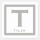 Grey Initial Name Kids Boy Party Back to School Square Sticker