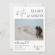 Informal and modern wedding invitation with a combination of script and serif fonts, your names and wedding date in large letters, and photos of the two of you. Photo wedding invitation in white with grey fonts personalized with two photos, on one either side of the invitation. Modern typography wedding invitation personalized with photos.