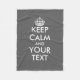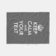 Custom grey keep calm and your text fleece blanket. Create your own funny keep calm and carry on parody. Vintage keepcalm typography template with crown. Custom background colour ie grey and white. Cute keepcalmandcarryon spoof examples: Keep calm and nurse on. Keep calm and smile on. Keep calm and snuggle up. Available in small medium and large. Suitable for men women and kids.