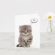 Cute grey fluffy kitten on white with a thought bubble and pink heart.