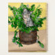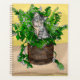 Adorable hand drawn grey cat sitting in a pot of catnip.