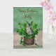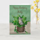 Personalized birthday card for cat lover's. Cute cuddly grey kitten sitting in a bucket of plants.