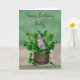 Grey Kitten sitting in a Pot of Catnip Birthday Card