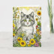 Grey Kitty Cat Sitting in Flowers Birthday Card