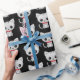 Grey kitty on black wrapping paper