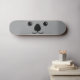 A cute grey koala animal face with a sweet smile, big nose, and shiny black eyes. An original digital art design.