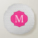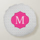 Grey Lattice Pattern Hot Pink Monogram Round Pillow