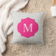 Grey Lattice Pattern Hot Pink Monogram Throw Pillow