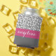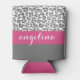 Grey Leopard Print Pattern with Pink Name Can Cooler