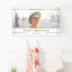 An elegant and minimalist funeral banner with your loved one's photo printed inside grey frames. Celebrating the life of is written at the top, and your loved one's name below in bold grey letters.