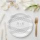 Simple and elegant Modern Deco Wedding Paper Plates with a striped criss-cross hatched art deco design in grey. These classic plates can be easily customized with your wedding details. For more customization options, click on the Customize It button.