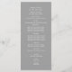 Modern text design in grey printed rack card wedding programs with white text.
