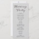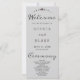 Turn to the back, and you'll find a carefully curated list of the wedding party. The text is elegantly presented in classic black and grey, utilizing a simple block font for a clean and sophisticated aesthetic. The words "Welcome," "Ceremony," and "Wedding Party" are adorned in a beautiful decorative script font, adding a touch of romance and whimsy to the overall design.