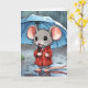 Cute grey mouse with red coat holding an umbrella in the rain for thinking of you.