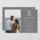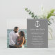 This Nautical Monogram Photo Save the Date Announcement comes with a simple text design, a simple nautical anchor for the bride and groom monograms in a modern outlined box waiting for your photo and your wedding details to customize. Additional colours available with this design. Ideal for couples who want a coastal wedding theme for their announcements.