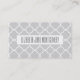 Ces Cartes de visite professionnels modernes Simple White et Grey Ogee Motif sont un choix cool et sophistiqué pour le spa ou professionnel de la thérapie. Un design géométrique féminin et unique pour les thérapeutes et les instructeurs contemporains, ce carte de visite élégant est également une carte de rappel de rendez-vous. Un très bon choix pour un salon ou un styliste, ou pour ceux qui veulent une carte de visite simple et élégante. Cette carte est en coordination avec la collection de couleurs Pantone Tinted Medley pour 2015.