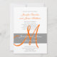 Grey, White and Orange Wedding Invitation with Your Monogram and Names in a simple, yet elegant design. ELKE CLARKE © for Monogram Gallery. Shown on basic white paper