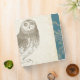 Feeling artsy? Get this contemporary drawing of a grey owl on a collage-inspired background. The background is colourful and includes tones of blue, grey and green. This fine art print will brighten any living room, bathroom or bedroom.