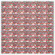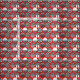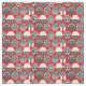 This fabric has a geometric design of ovals with different patterns in grey in each half all on a field of red.