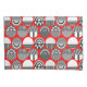 This pillowcase has a geometric design of ovals with different patterns in grey in each half all on a field of red.