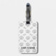 A pattern made of puppy paws and bones. Custom luggage tags in white and grey. Edit name to customize.