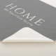 Personalize your living space with this cozy custom design in rich medium grey. Contrasting light grey type face has the word "HOME" in modern large lettering with your address below. Personalize the text with your address. This item makes a wonderful gift or treat for yourself. There really is no place like home!