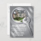 This new home announcement features a key ring with a key attached representing the key to your new home. The key is silver and the keyring holds a space to insert a photo of your new home. The postcard is silver with stripes. Very modern and unique with clean lines. If you're moving into a new place this is great to send to your friends and family.