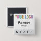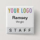 Grey Pinback Staff Badge Event Logo Square Name 2 Inch Square Button