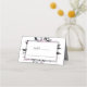 Personalized wedding place card depicts a modern floral frame botanical design with simple grey and pink flowers and leaves. Customize the back with names and date or details of your choice.