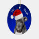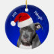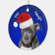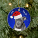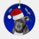 Grey Pit Bull with Santa Hat Christmas Ceramic Orn Ornament