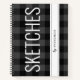 Grey and black buffalo plaid check pattern personalized sketchbook notebook for drawing and art, titled "Sketches by... and your name" printed on the cover in modern large oversized bold letters. Grey background colour can be changed to anything you like using the advanced editor.