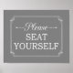 Grey Please Seat Yourself Funny Bathroom Poster