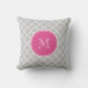 Grey Quatrefoil Pattern, Hot Pink Monogram Throw Pillow