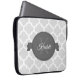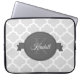 Protect your laptop with a Grey Quatrefoil Personalized Laptop Sleeve. Laptop sleeve design features a simple quatrefoil background and fancy emblem to personalize with your name and monogram. Additional items available with this design as well. Please contact me directly for assistance with personalization.