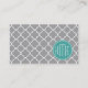 Grey Quatrefoil with Custom Mint Monogram Business Card
