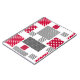 Grey red polka dot patchwork on white background