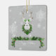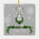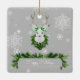 Decorate your tree this holiday season with a Grey Reindeer Ceramic Ornament. Ornament design features a festive reindeer wearing a Christmas wreath adorned with holly berries and falling snowflakes and a holiday greeting box decorated with holiday garland. Additional gift and holiday items available with this design as well.