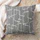 Grey Retro Lino Print Geometric Pattern Throw Pillow