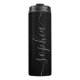 Experience sleek sophistication with this modern Thermal Tumbler featuring an elegant grey script font on a deep black background. This design is perfect for those who prefer a professional, minimalist aesthetic for their daily hydration needs. This Thermal Tumbler is fully personalizable, allowing you to easily replace the placeholder text with your own name or initials to create a unique accessory. Built to keep your favourite beverages at the perfect temperature, it is an ideal companion for the office, gym, or commute. The understated contrast of the grey lettering makes it a versatile and thoughtful custom gift for any occasion.