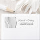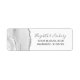 This elegant modern wedding invitation return address label features a grey watercolor agate border trimmed with faux silver glitter. The customizable text combines charcoal grey handwriting and copperplate fonts on a white background.