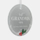 A glass Christmas ornament for the best grandma ever with a grey and (non-foil) silver colour scheme, and a holly berry and leaf decoration. It has space for your personalized message. Simply customize this ornament, add it to your cart, and gift it this Christmas.